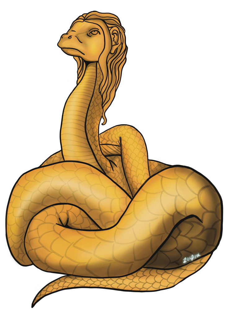 Glycon, the human-faced snake god of the 2nd c. CE. Art by Z.Guertin