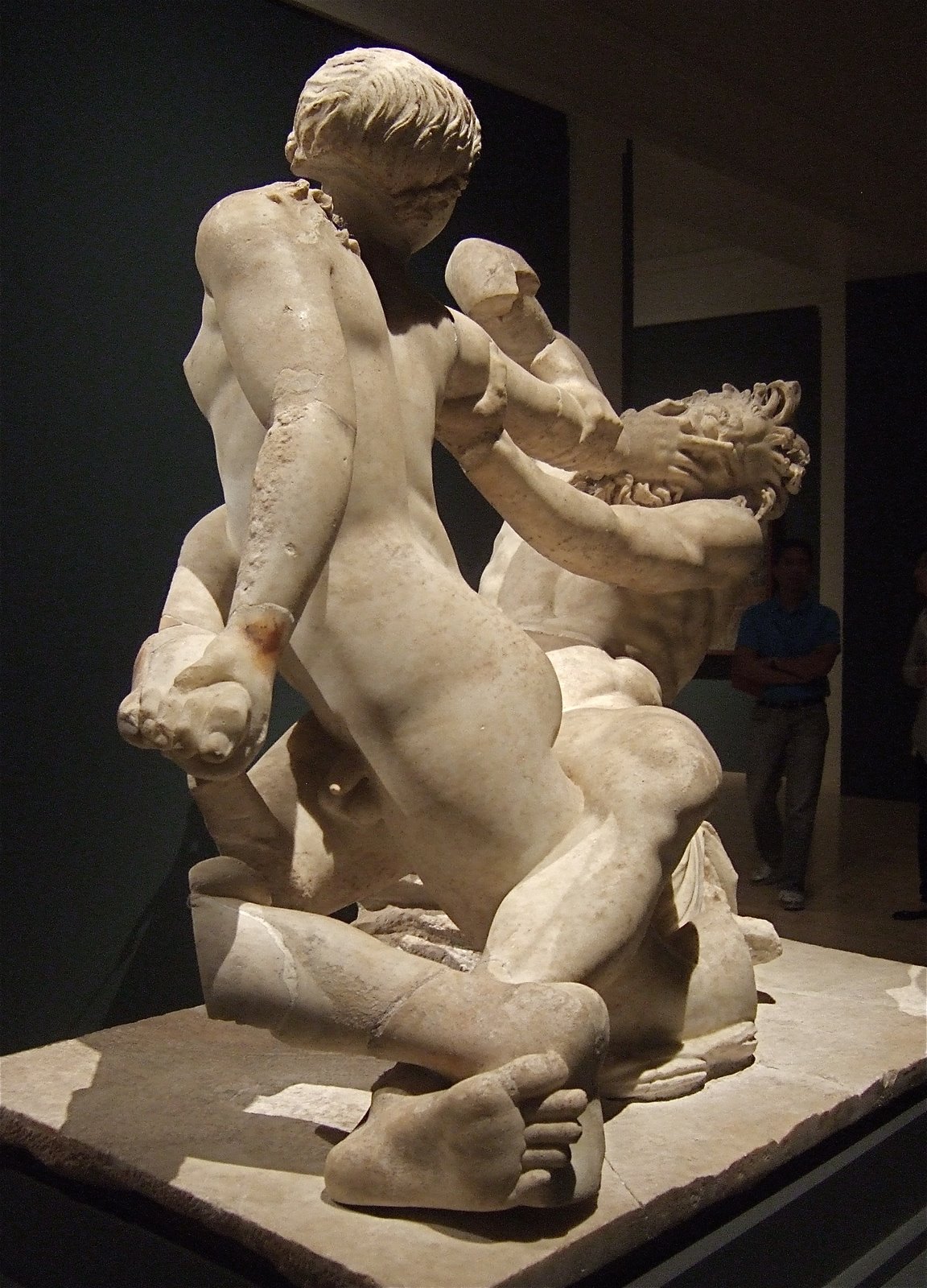 This statue group would have likely been displayed in villa (Villa of Poppaea in Oplontis, Italy, and the villa at Chiragan in Gaul) or theatre (Daphne and Side) contexts, and likely among other statues that could be ‘read’ in addition to it. It was very much a public art Retzleff suggests that its interpretation could include: