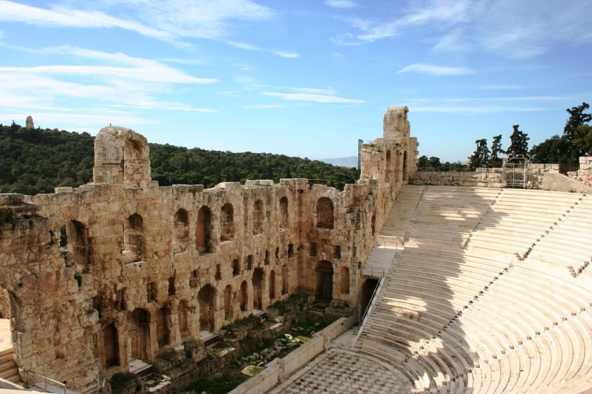 That is incredible to me is that you can actually stand in the spot where some of the most famous plays in literature were performed, in the shadow of the Acropolis. Tradition has it that the first tragedy was performed at the Dionysia by actor-playwright Thespis (Thespis- thespian…see what they did there?) in the early 530s BCE.There were several phases of the Theatre of Dionysus, commencing with wooden seating in the 6th century BCE. The theatre is currently in pretty rough shape, though reconstruction work was completed between 2009 – 2015. The main problem, as with most buildings from antiquity, was that much of the stone was pilfered and used in other buildings nearby, or possibly carried off to be burned down in lime kilns.