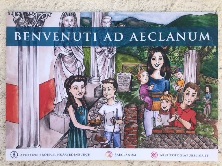 As a way of reconstructing the past in Vita Romana, which I’ve discussed on this blog before, I worked with the specialists on-site whose scientific background in the materials I was representing informed much of the illustration work. Intersecting with the aims of the exhibition, the work done at Roman Aeclanum exemplified the way that collaboration between artists and different archaeological specialists can be translated into artistic work that help the public understand the archaeological site and material culture more contextually. I have recorded a podcast with my co-host, Liam, for Two Friends Talk History which allowed me to discuss the public outreach programme I coordinated and created in Aeclanum.