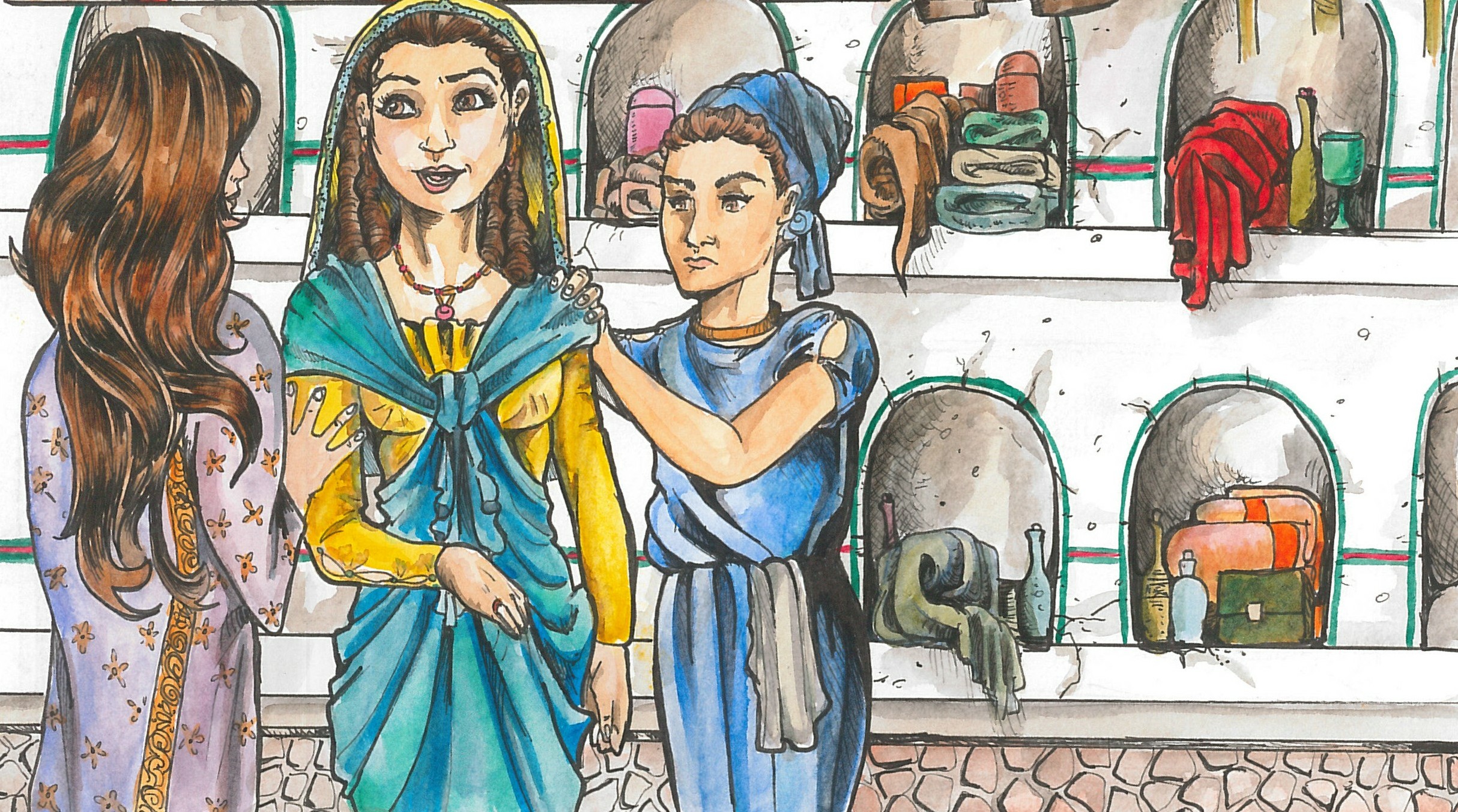 Vita Romana is a bespoke graphic novella that illustrates an in-depth exploration into Roman daily life. Our story follows a young patrician pre-teen, Neratia Prima, and her family as they deal with daily life in a Roman colonia in the mid-second century AD. Neratia learns about the myth of the Niobids through a statue found at the baths.